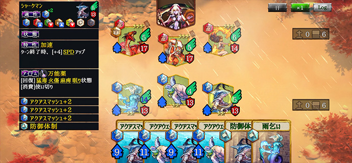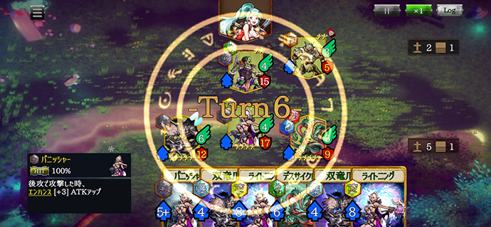 素早さ(SPD)を上げたり、行動順を逆転するなどのスキルを使うと、先手を取りやすくなるよ〜