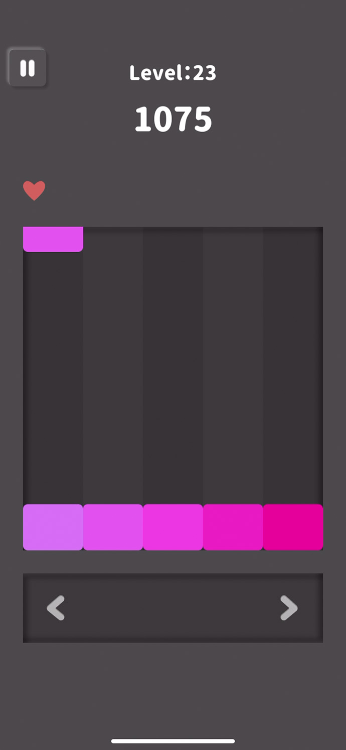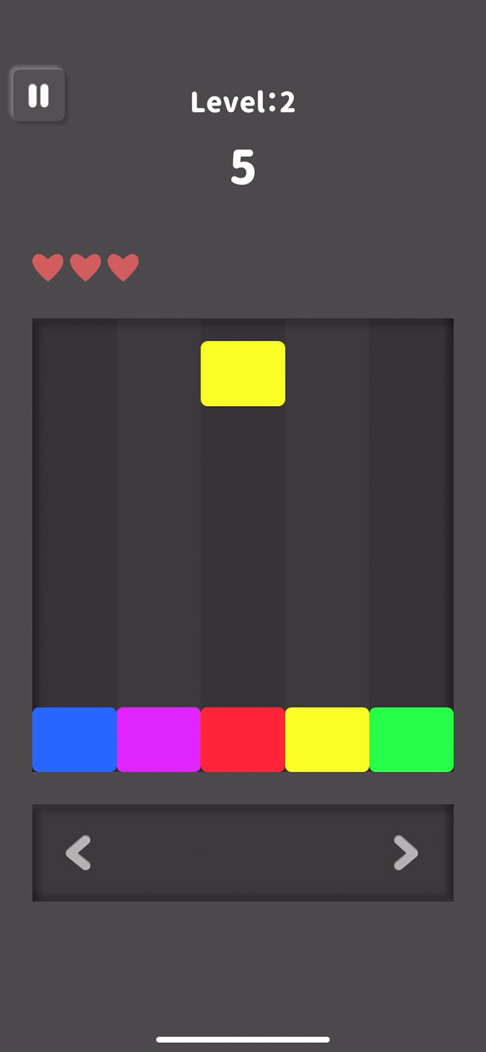 落ちてくる色をスライドして、同じ色があるレーンへ移動させるよ〜