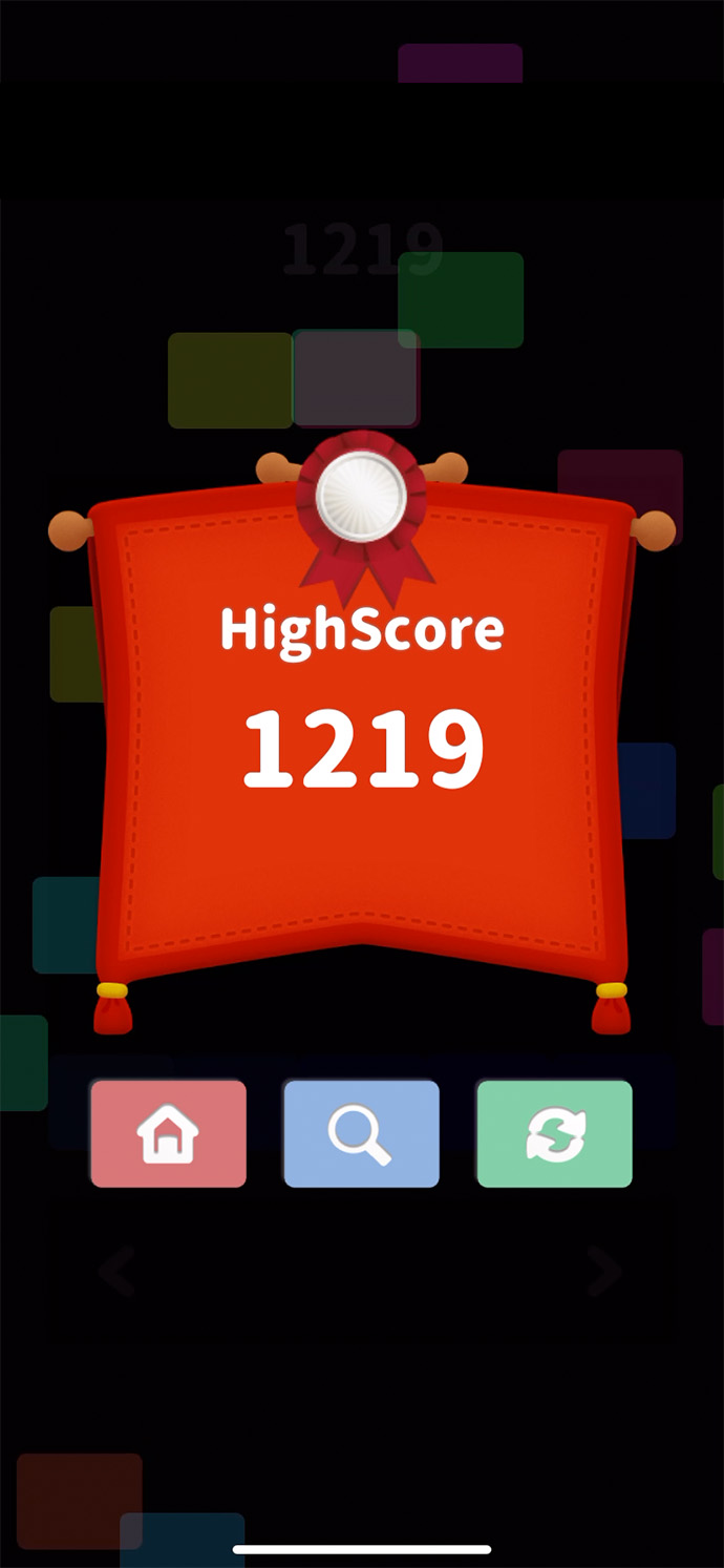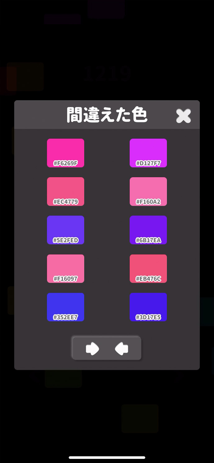 スコア画面の「検索アイコン」から、”間違えた色” を確認できるよ。