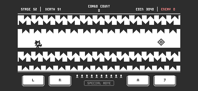 このゲームの一番いいところは、着地直前でもレーン移動ができるところ!