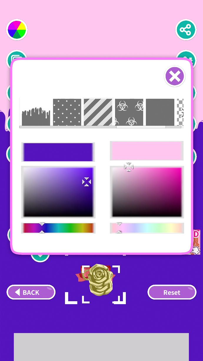パーツや背景の色つけも、スライダーとタップで、イメージ通りの色を選べるところがいいよね〜