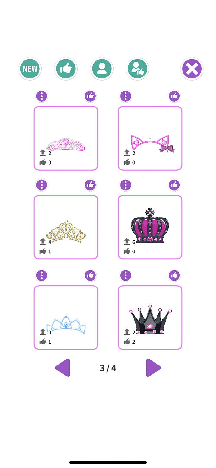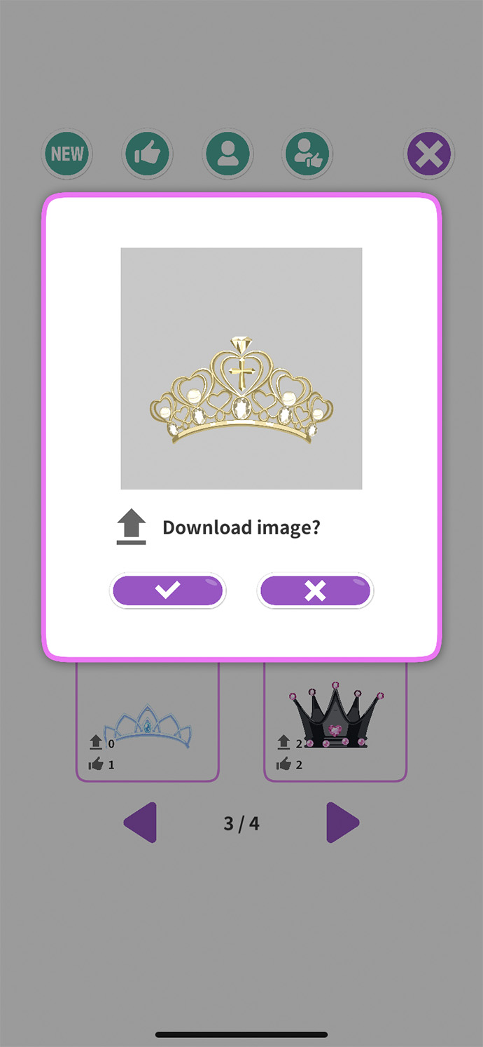 自作のティアラを投稿してみんなとシェアしたり、他のユーザーのティアラをダウンロードもできるよ〜