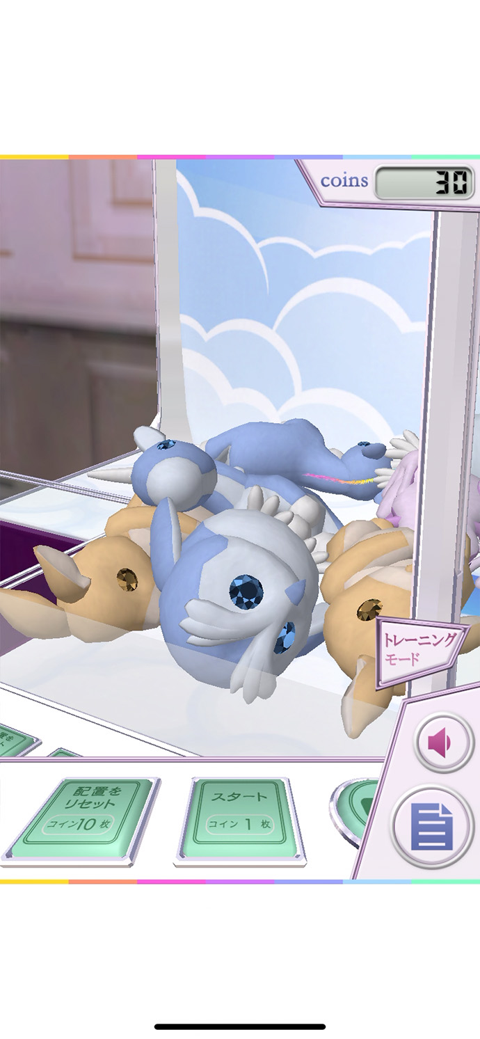 どうしても取れないときは、ぬいぐるみをゲットするともらえるコインを使って新しいぬいぐるみに替えられるよ〜
