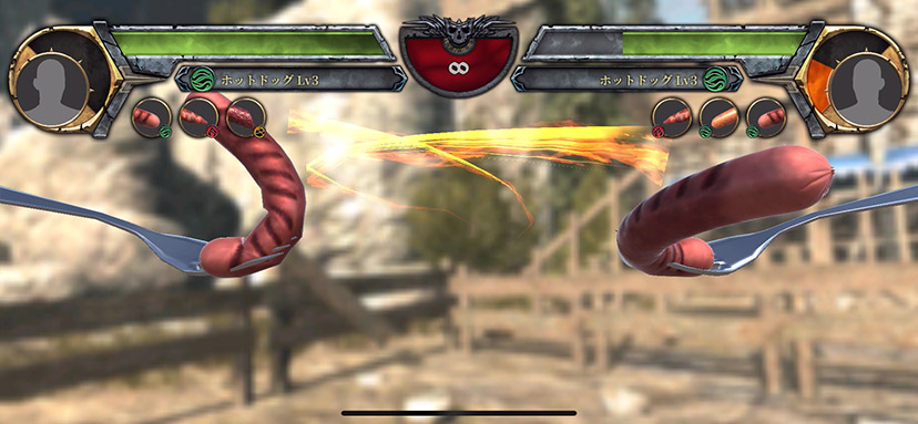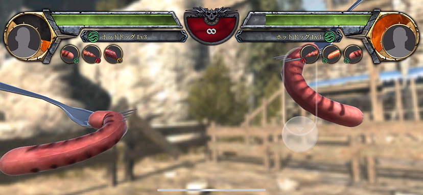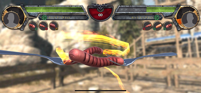 操作は画面長押しでパワーを溜めて、指を離すとソーセージを振って攻撃するよ〜