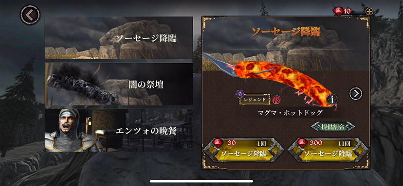 ガチャは3種類あって、期間限定でレアなソーセージの確率の上がるピックアップガチャもあるよ。