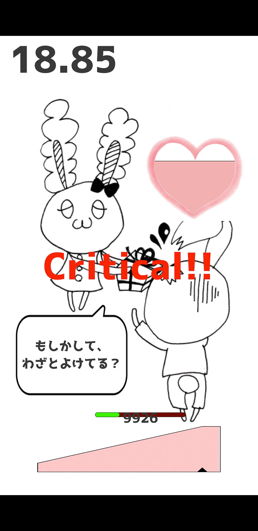 お互いにブラ〜ン、ブラ〜ンと揺れているところに、攻撃を当てることができるかがプレイヤーの腕のみせどころだよ!