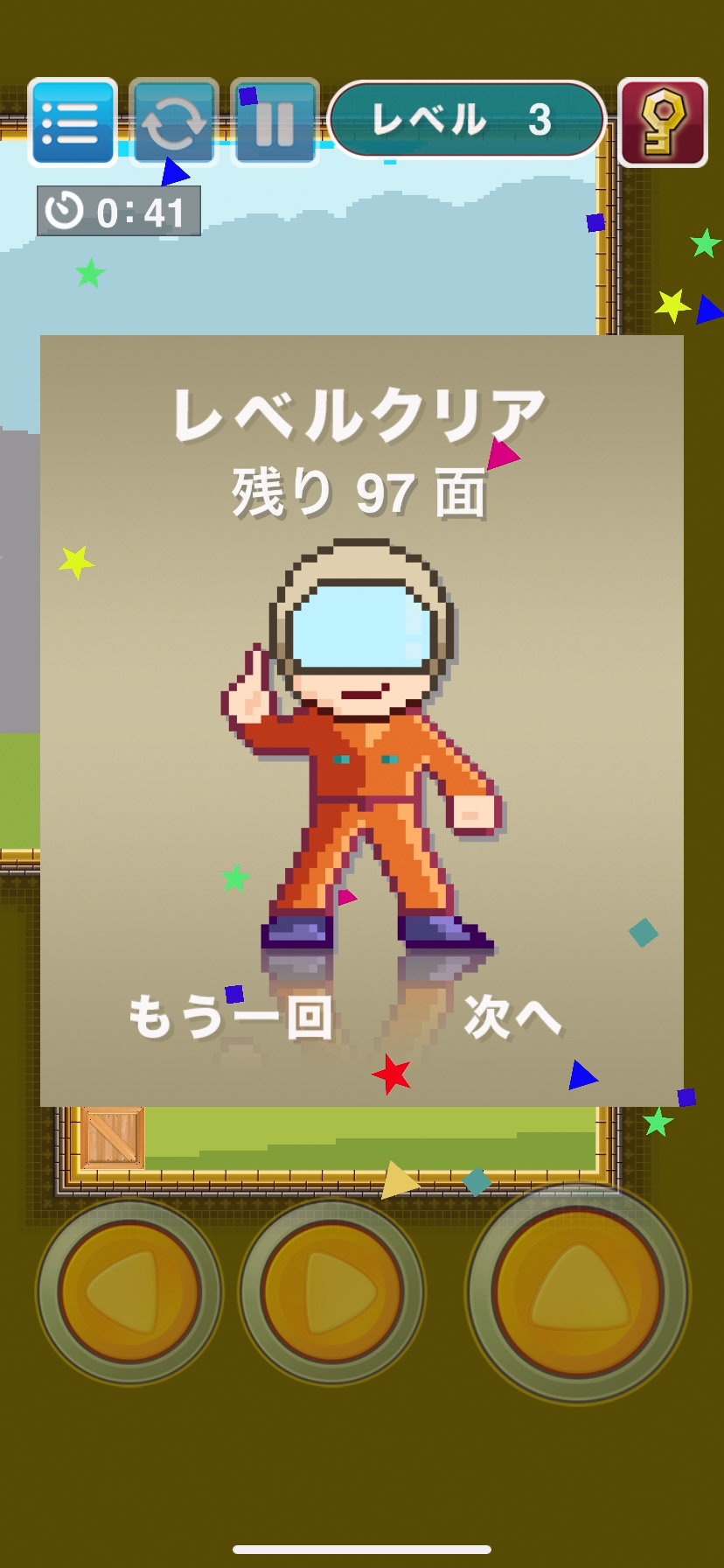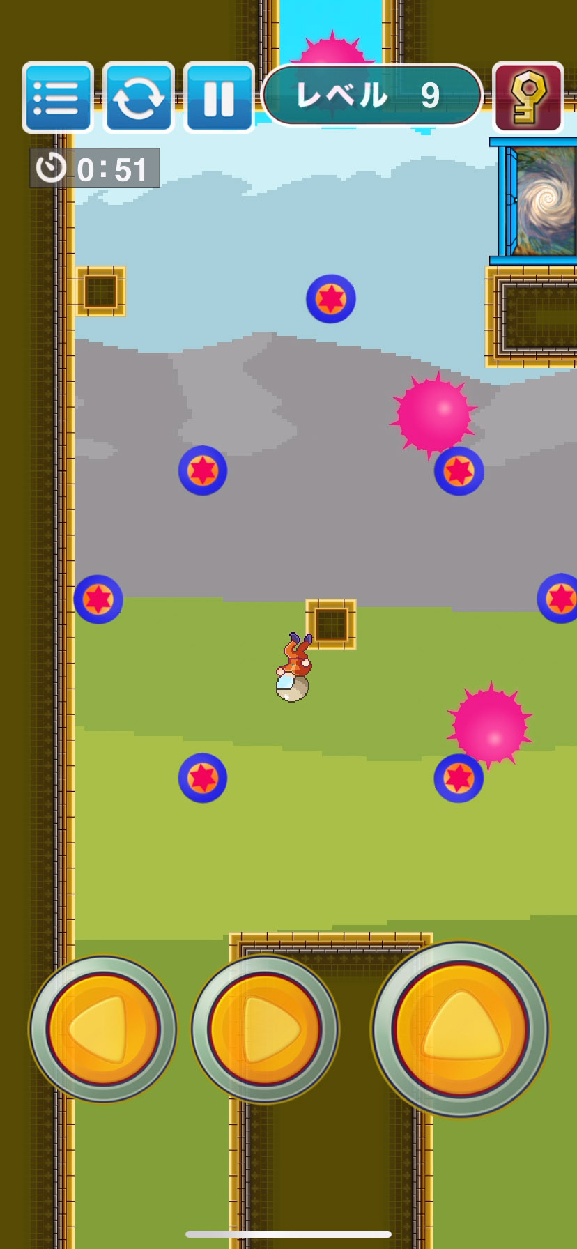 ステージは鍵を手に入れると出口が開き、出口にたどり着ければステージクリアになるよ〜