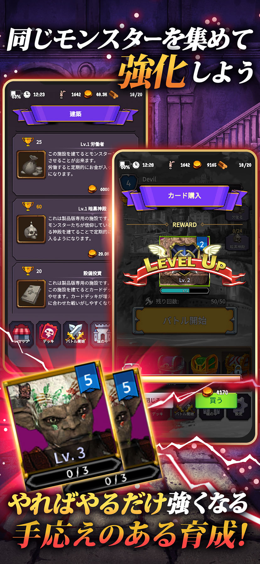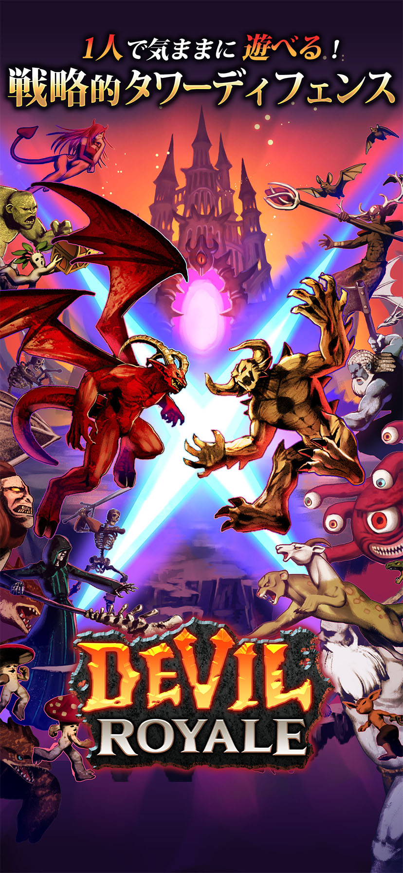 タップで召喚!戦略的タワーディフェンスゲームを簡単に楽しめるよ〜ユニークな能力を持つモンスターを育てて、魔王の中の魔王を決めるバトル「デビル・ロワイヤル – リアルタイムストラテジー」無料♪