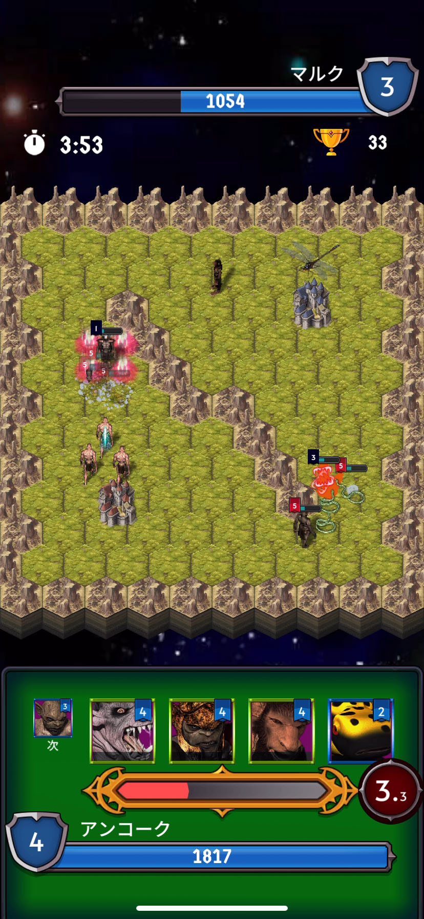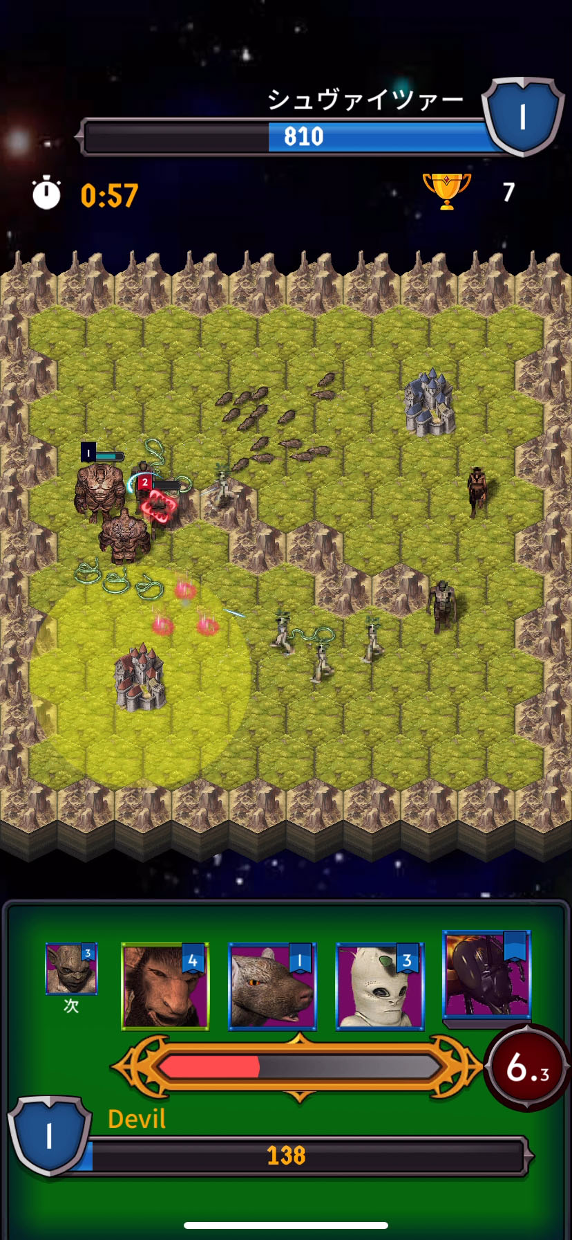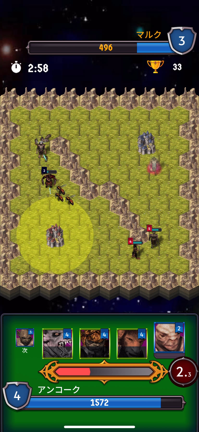 自分の城の周囲をタップするとモンスター(AI)が召喚されるよ。