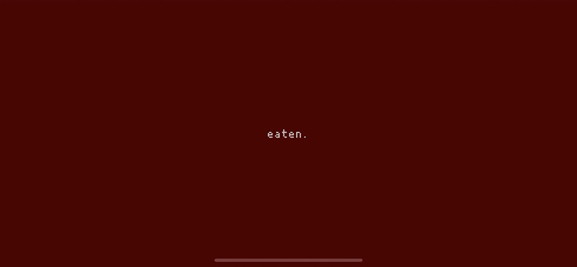モンスターに接触すると『ビチャ!』という音がして、赤い画面にeaten.の文字。
