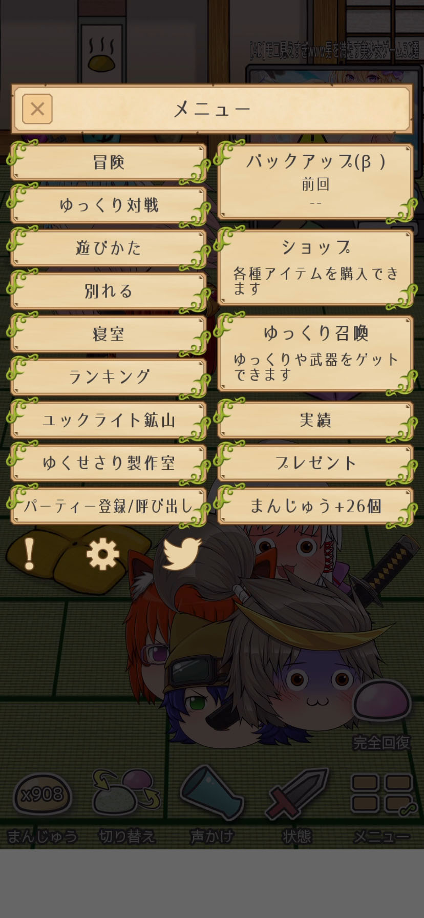 たくさんの「ゆっくり」を仲間にして冒険に出かける、楽しい育成ゲームだよ〜
