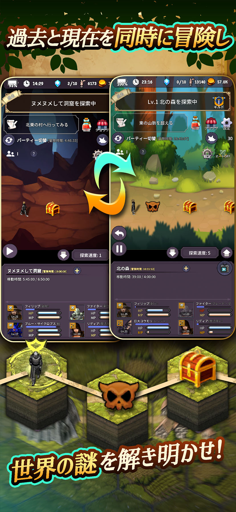 “過去に送られてしまった幼馴染”と現在にいる主人公、2つのパーティーを操作してストーリーを進めていくそうだよ〜