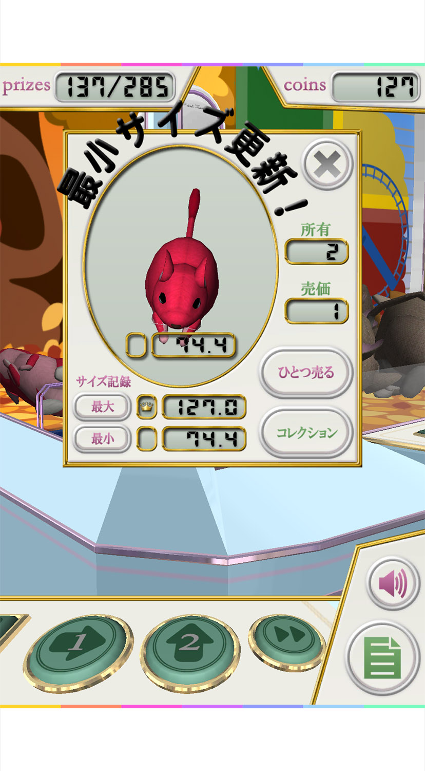 「へなへなスイーツキャッチャー」は、 “へなへな” した柔らかいヌイグルミを集める、本物そっくりの楽しいクレーンゲームだね!