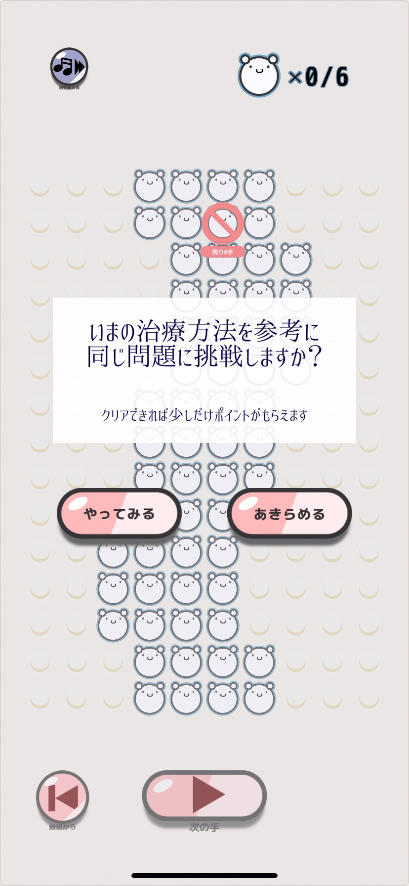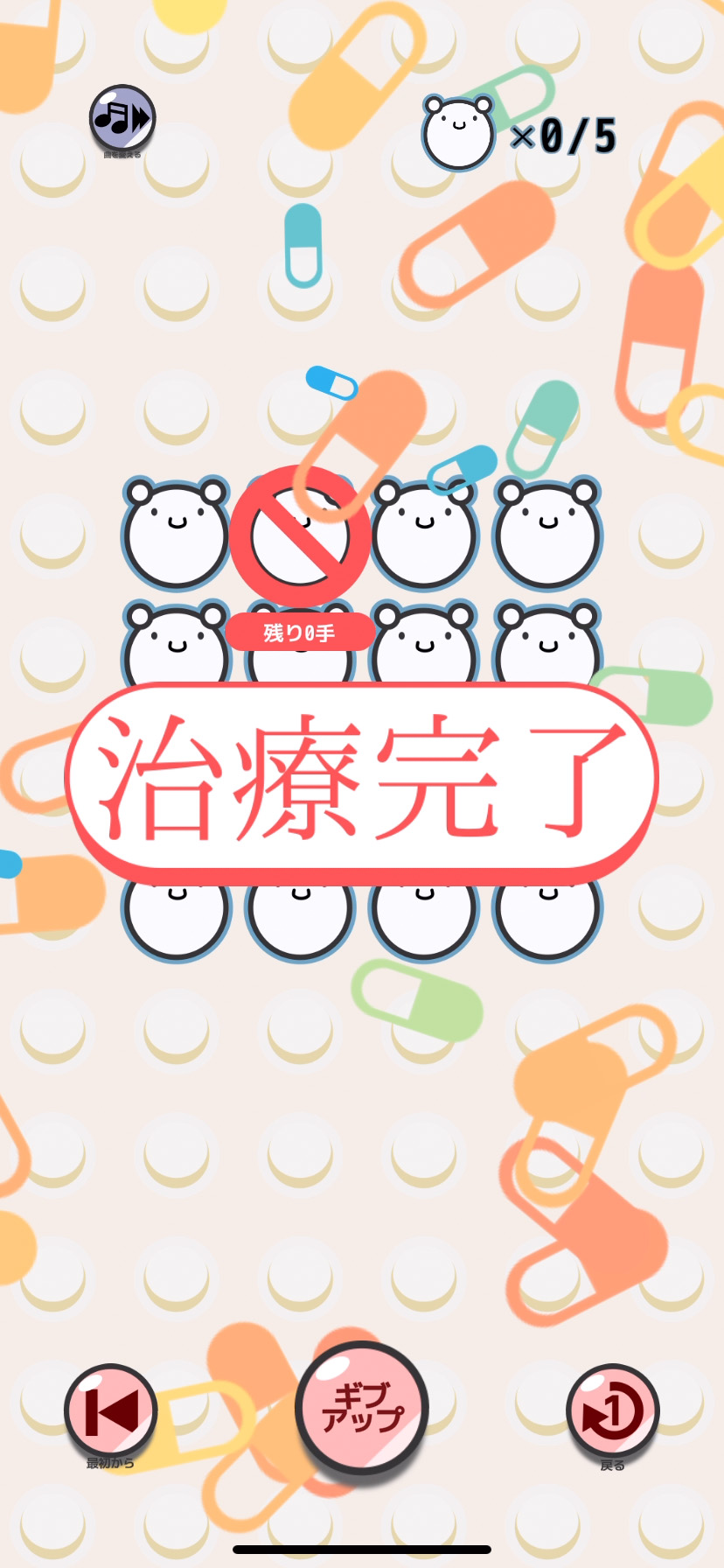 他にも、用意された答えより少ない手数でクリアすると”高速治療ボーナス”がもらえるよ〜!