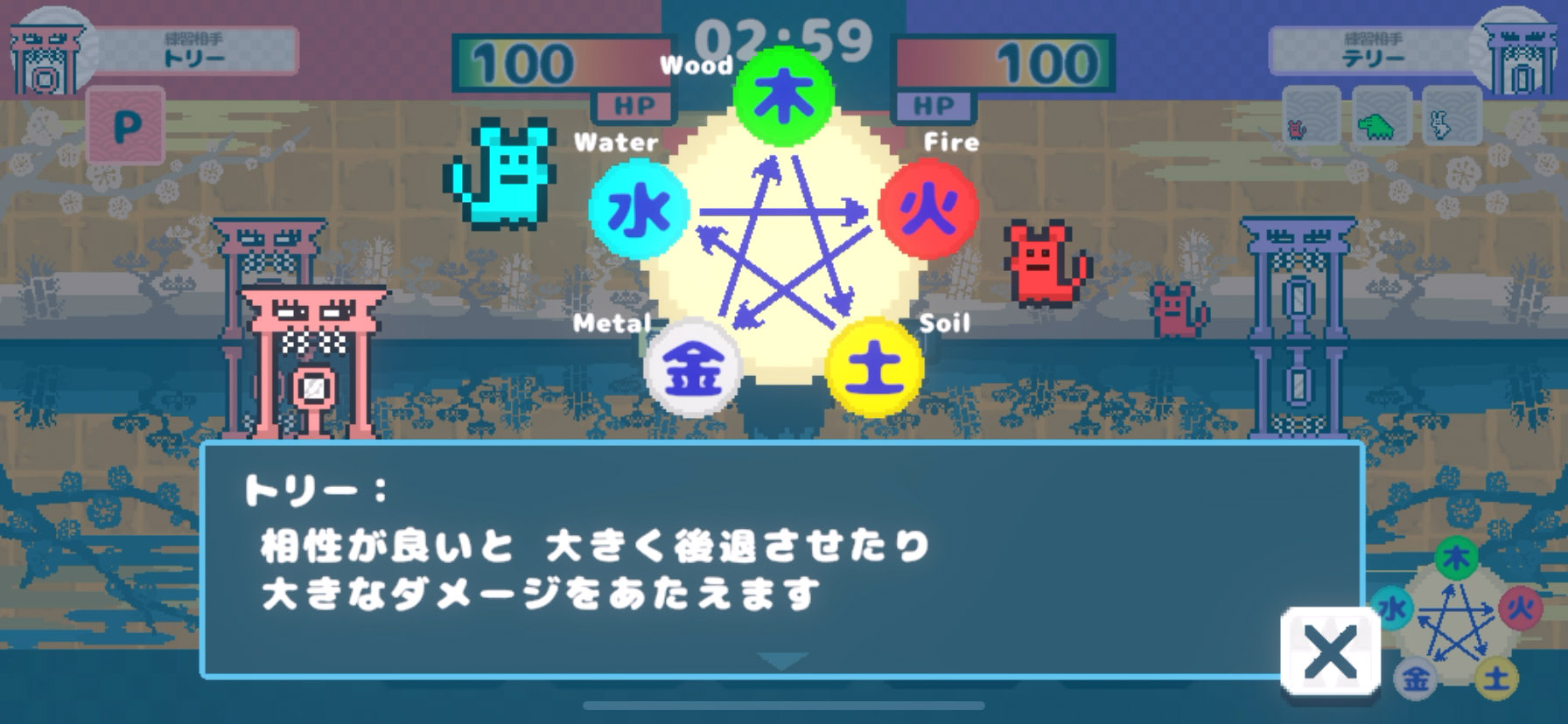 先に相手の鳥居を壊した方が勝者だよ〜!
