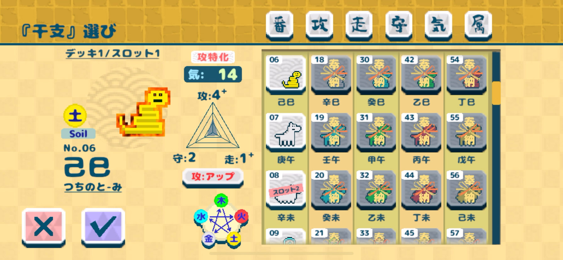あと、体の大きい干支は強いけど出撃させるのに必要な”気”がたくさん必要になるよ〜