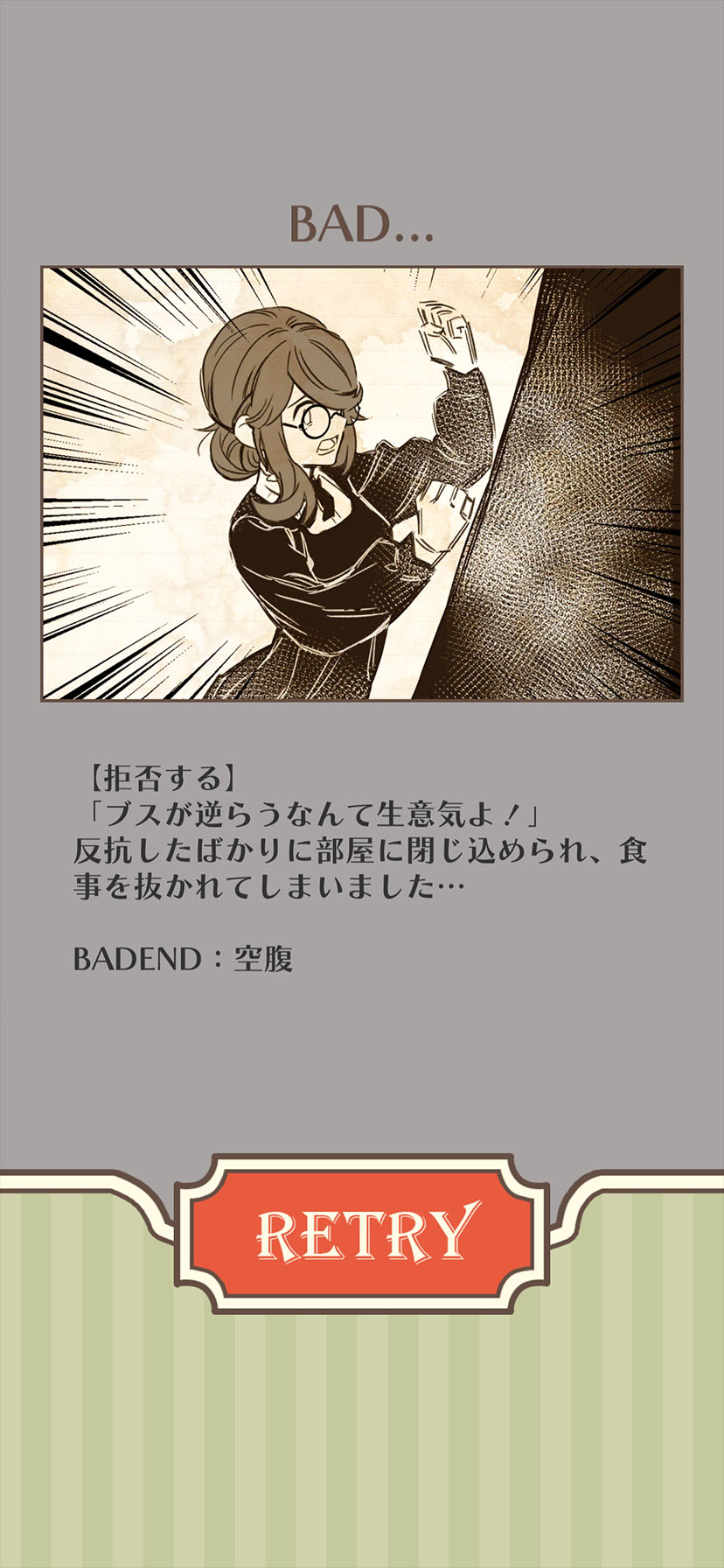 バットエンドを選んでしまってもすぐにやり直せたり、正解していてもバッドエンドの方も見ることができるのは嬉しいね!