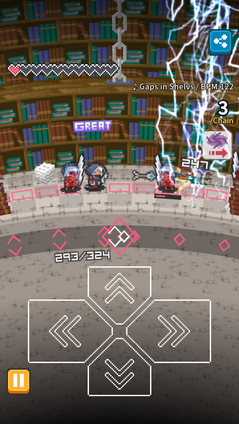 敵もビートに合わせて行動するから、それを回避しながら攻撃するよ〜