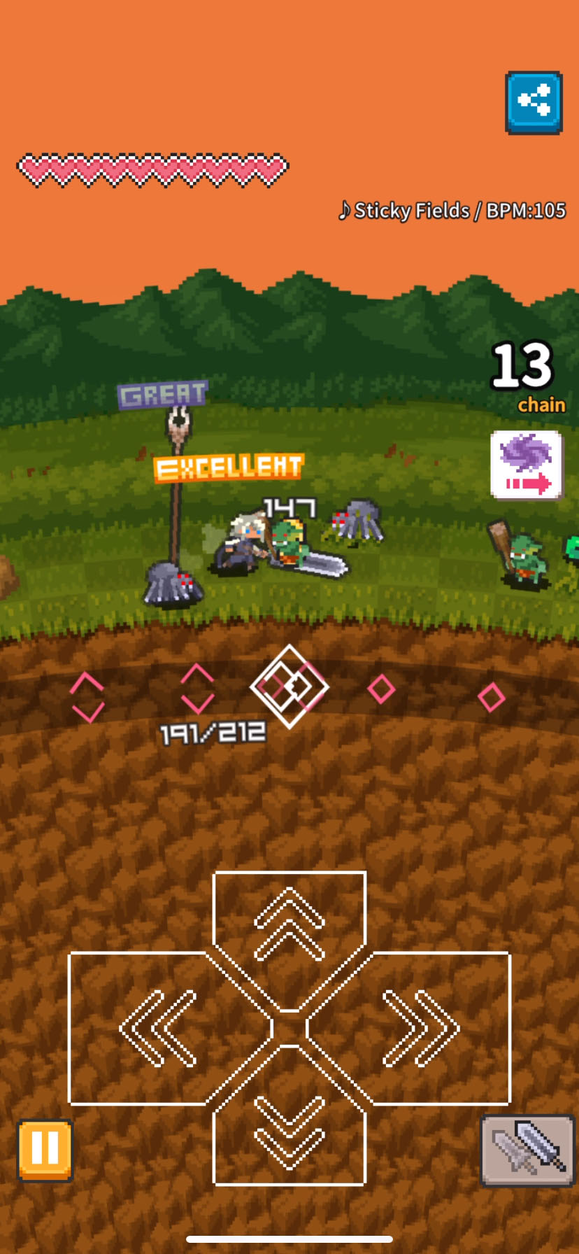 リズムゲームのようにビートに合わせてバトル!ピクセルアートの世界で探索と装備クラフトを楽しめるよ〜音楽とアクションが融合したハクスラRPG「Lilt Way」無料♪