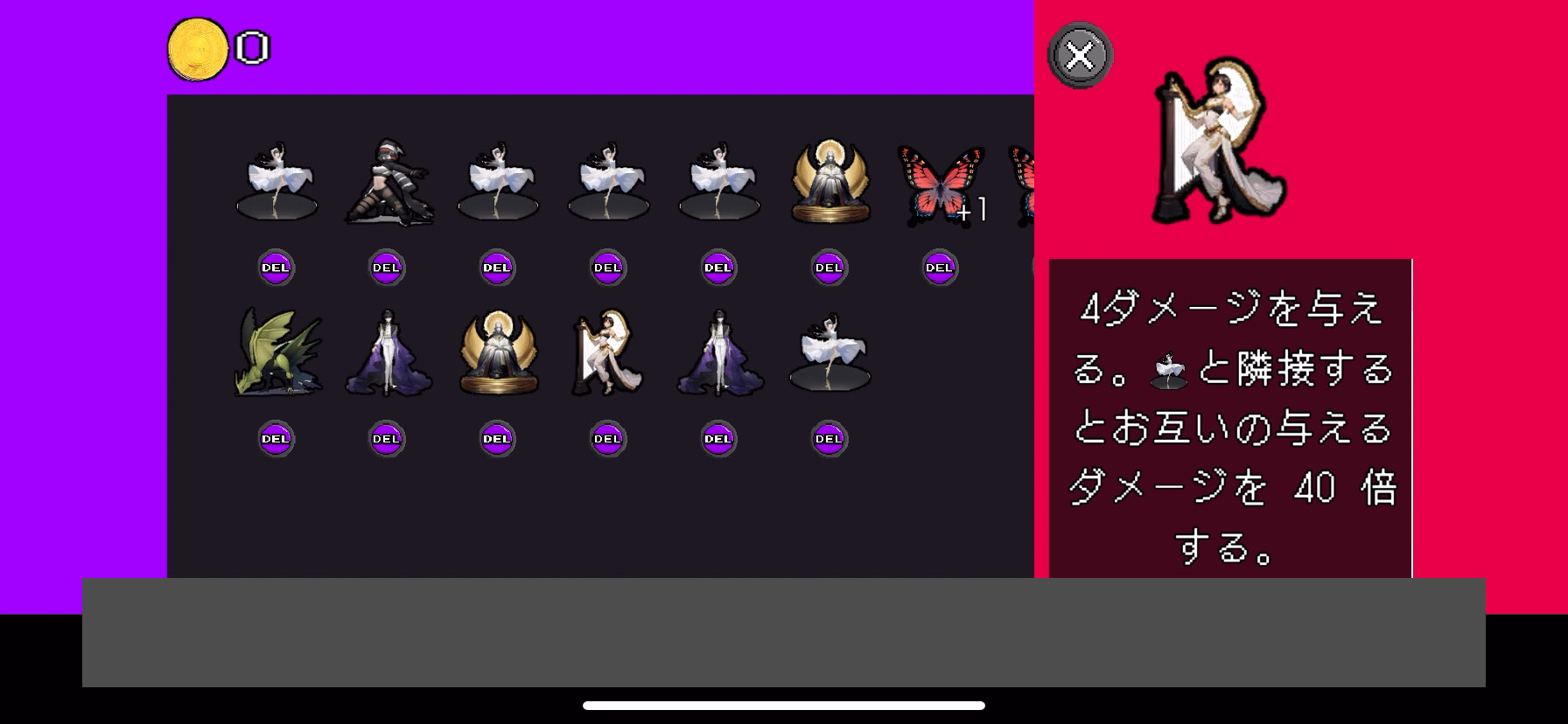 このゲームの一番の特徴はマス目上のキャラの配置によって攻撃力が変わるところ!