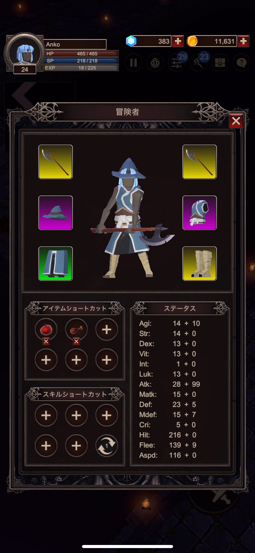 ステータス、装備、スキルの組み合わせで自分好みのキャラに育てられる楽しいゲームだね!