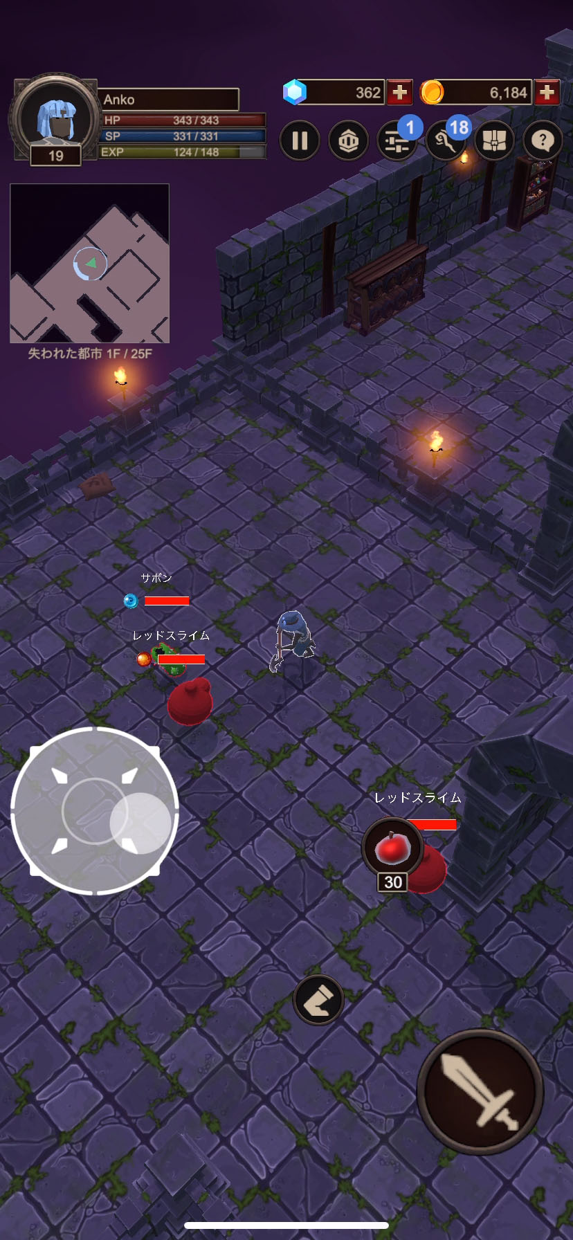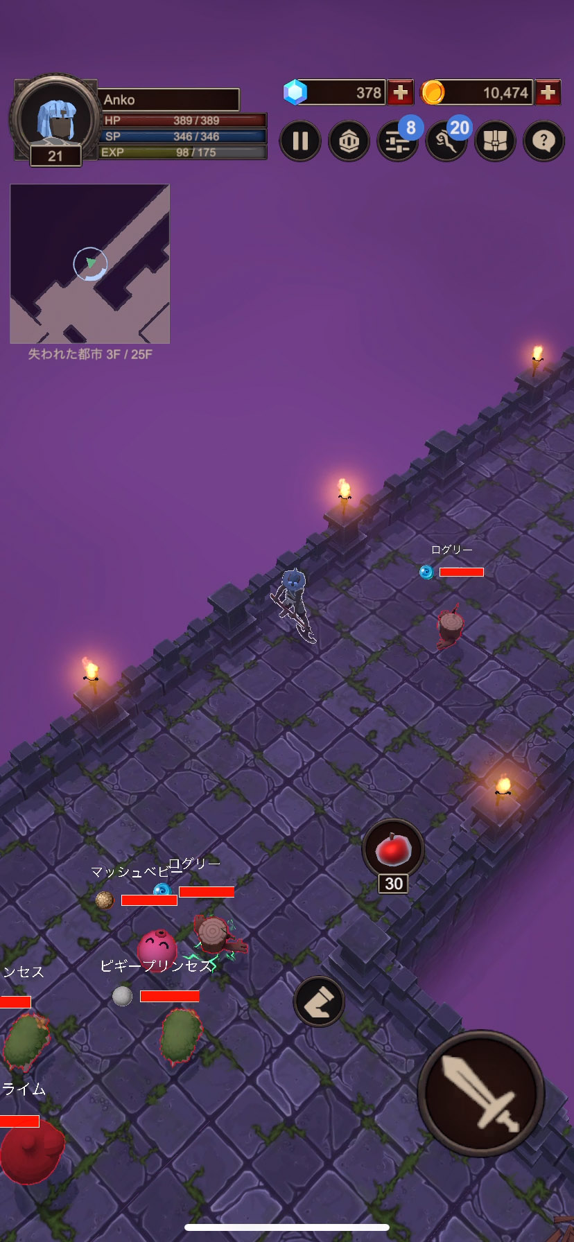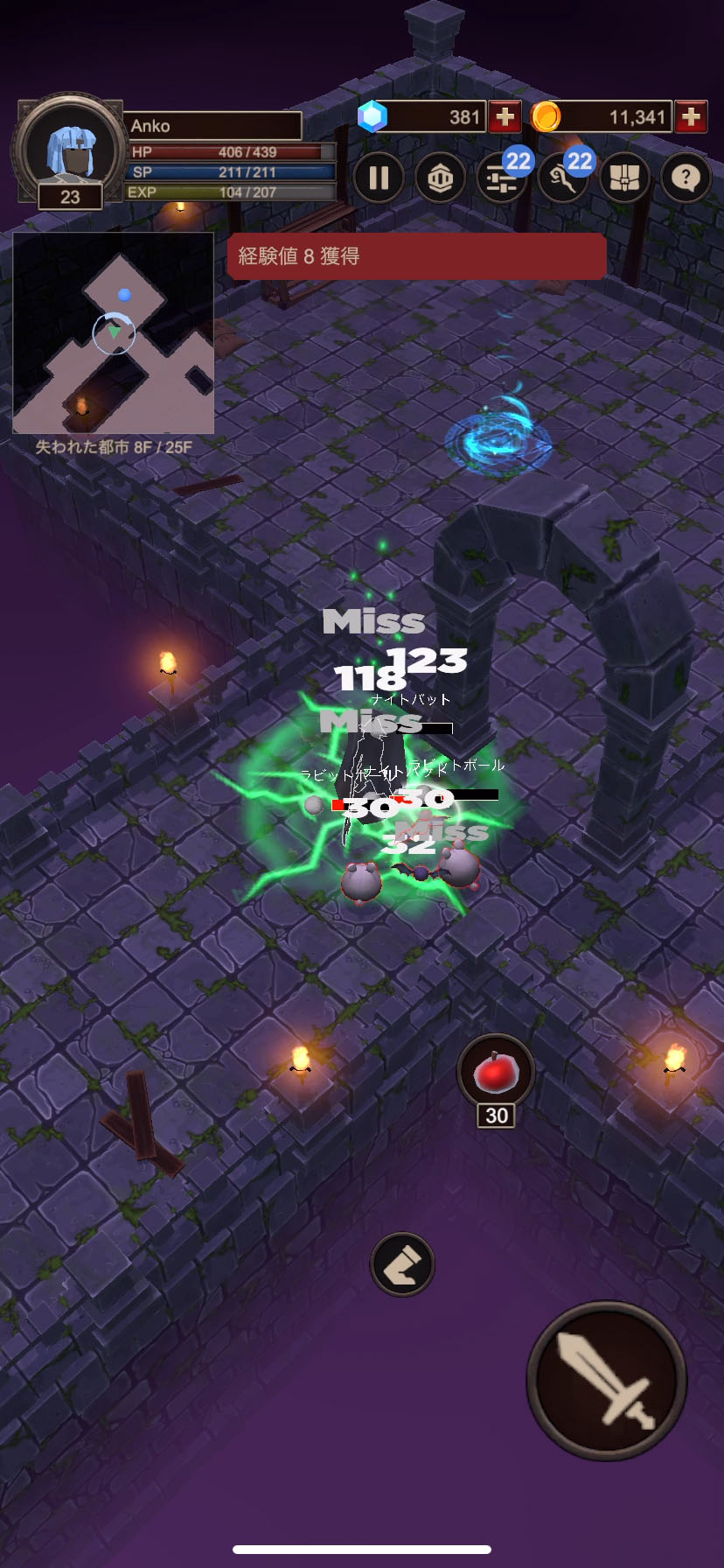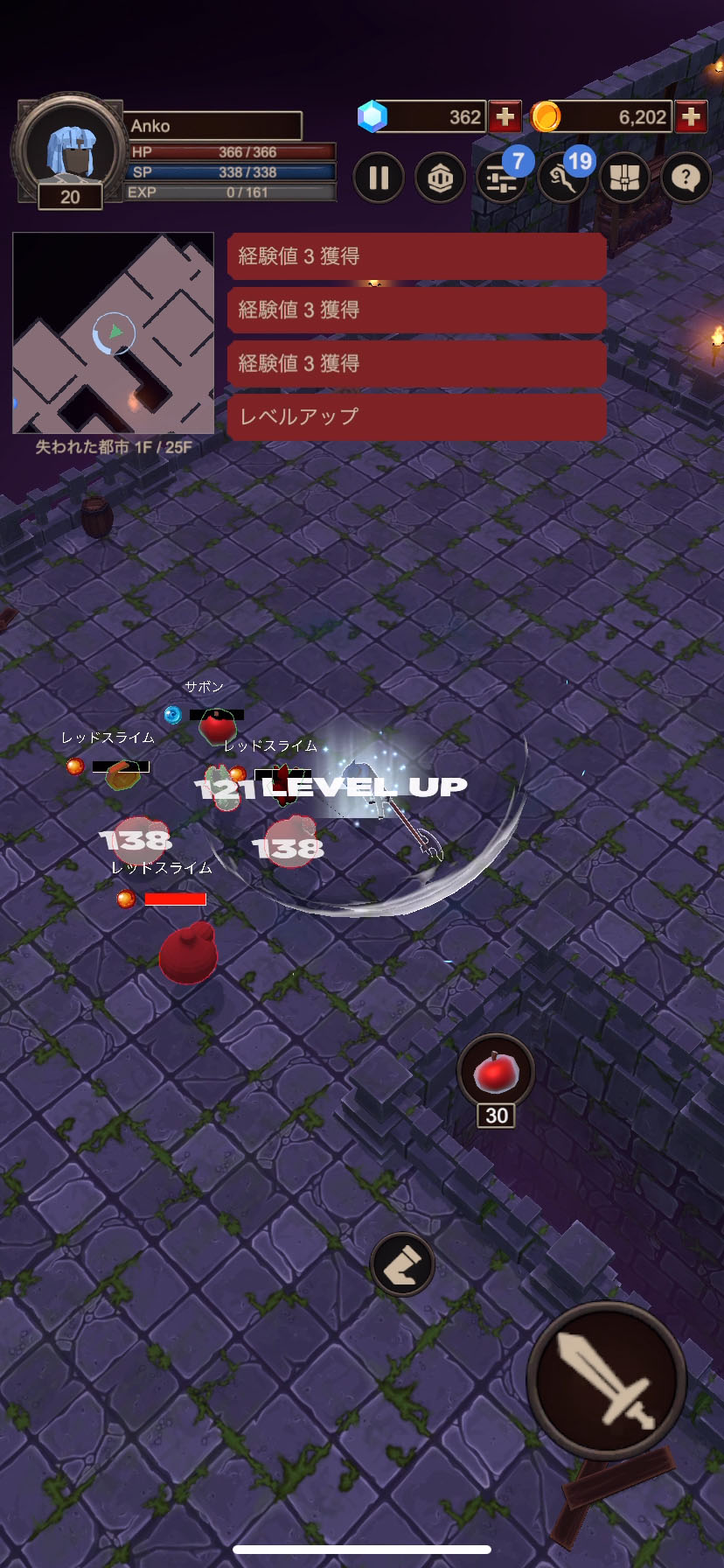 簡単操作で、ほどよい規模の自動生成ダンジョン。いつでも地上へ戻れて死亡べナルティも気にならいくらいで、とっても遊びやすいよね。
