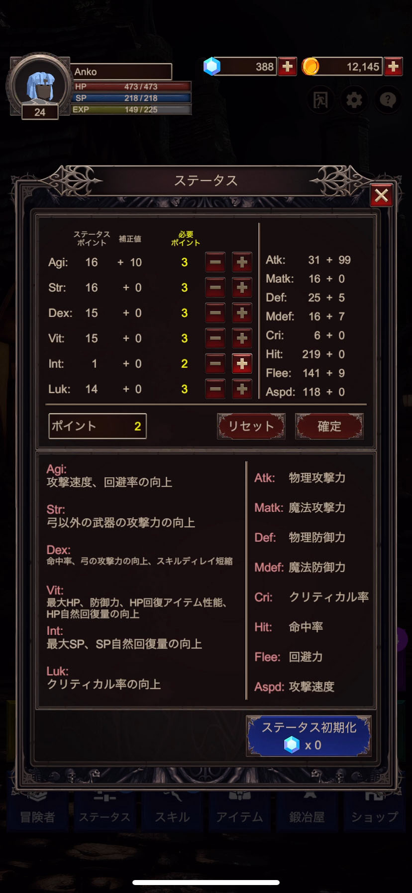うん。「ステータス」と「スキル」は初期化して再度振り分けができるけど、最初から異なるタイプのキャラを育てて遊ぶことができて嬉しいよ〜