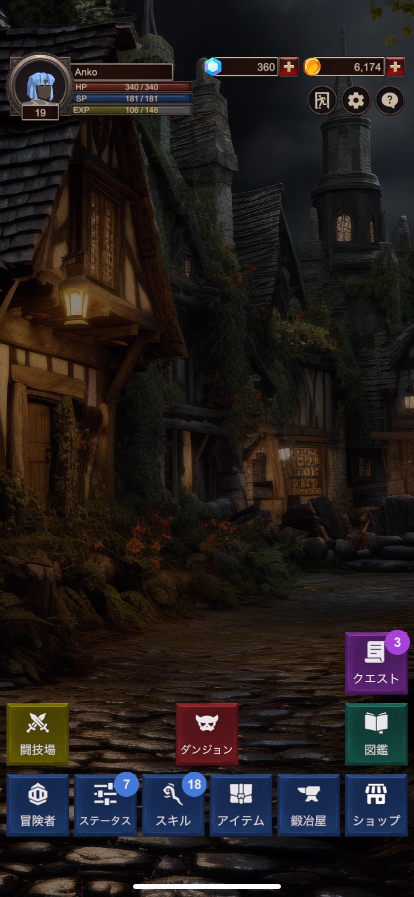 倒したモンスターがドロップしたり宝箱から手に入るアイテムや装備で強化、探索で得たポイントを「ステータス」と「スキル」に振り分けることでキャラ育成できるよ。