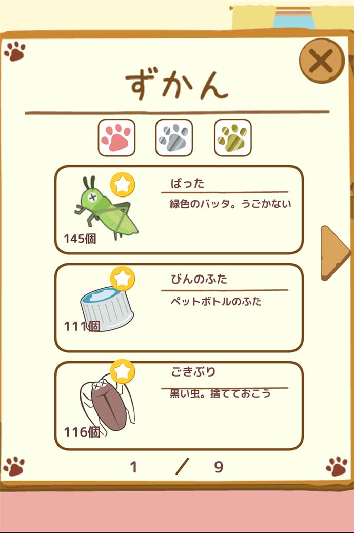 新しいキャラクターに来てもらうには、新しいエサや道具が必要だよ。