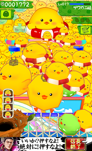 ステージ全体の範囲を広くするスキル【レベルアップ】の時にひよこ(?)の数を増やした状態で【レベルゼロ】がきてステージが狭まると大勢のひよこ(?)を一気にゲットすることができるよ〜!