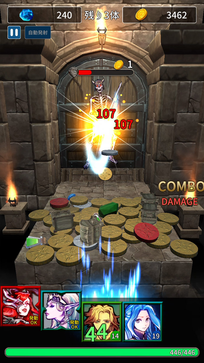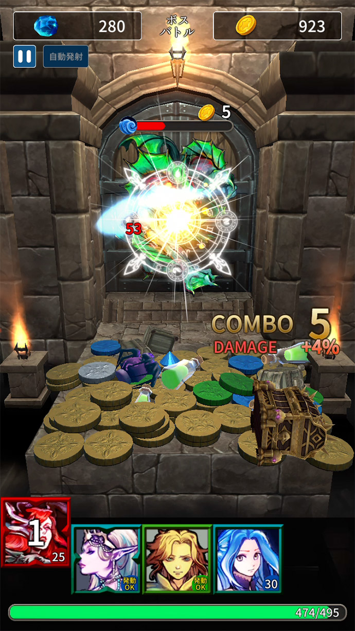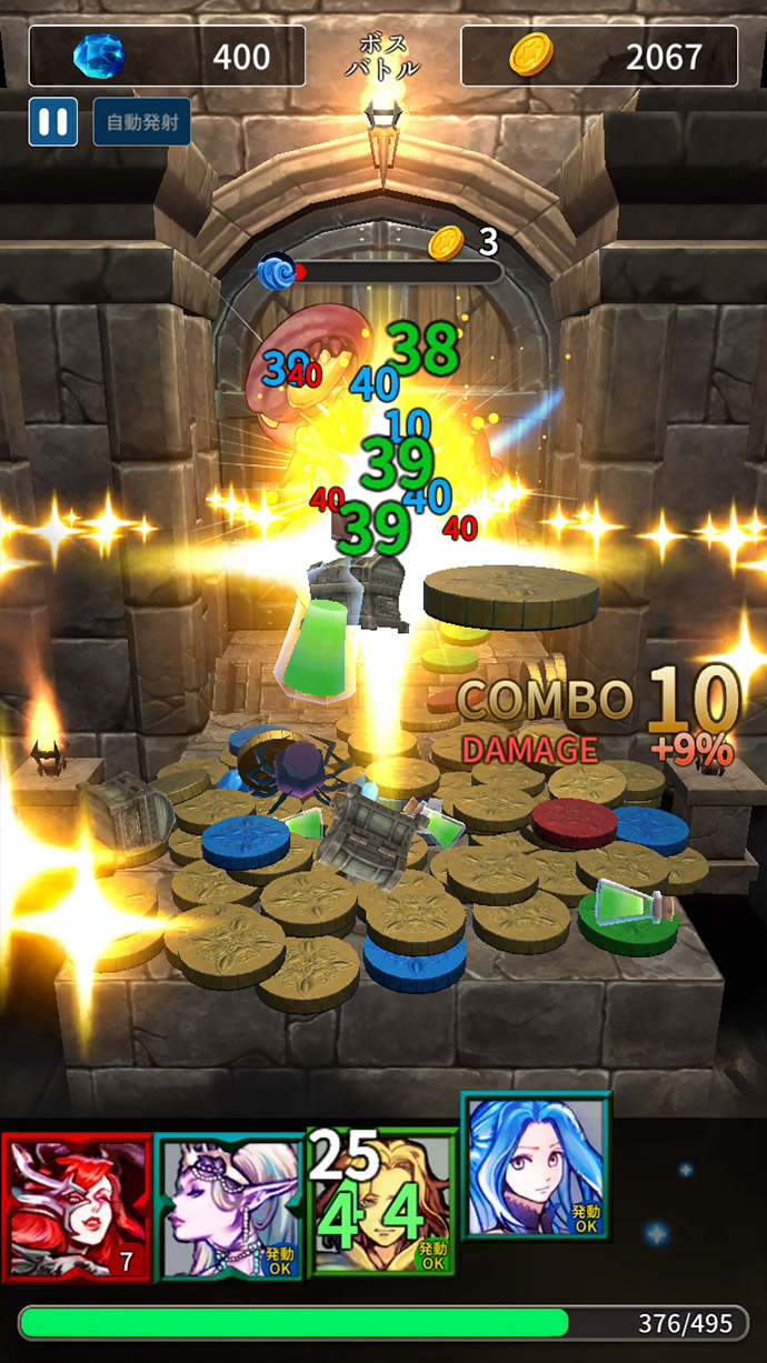 フィーバータイム中はスキルのオンパレードで、ポロポロ落ちていたひよこ(?)を滝のようにドドーッと落とすこともできて、とっても気持ちいいよ〜!