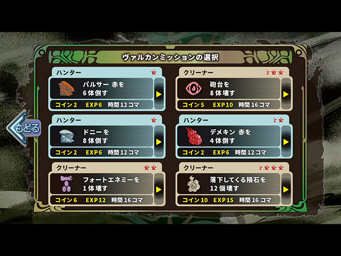 「ミッション」の内容は様々で、星が多いほど難易度が高いんだね。