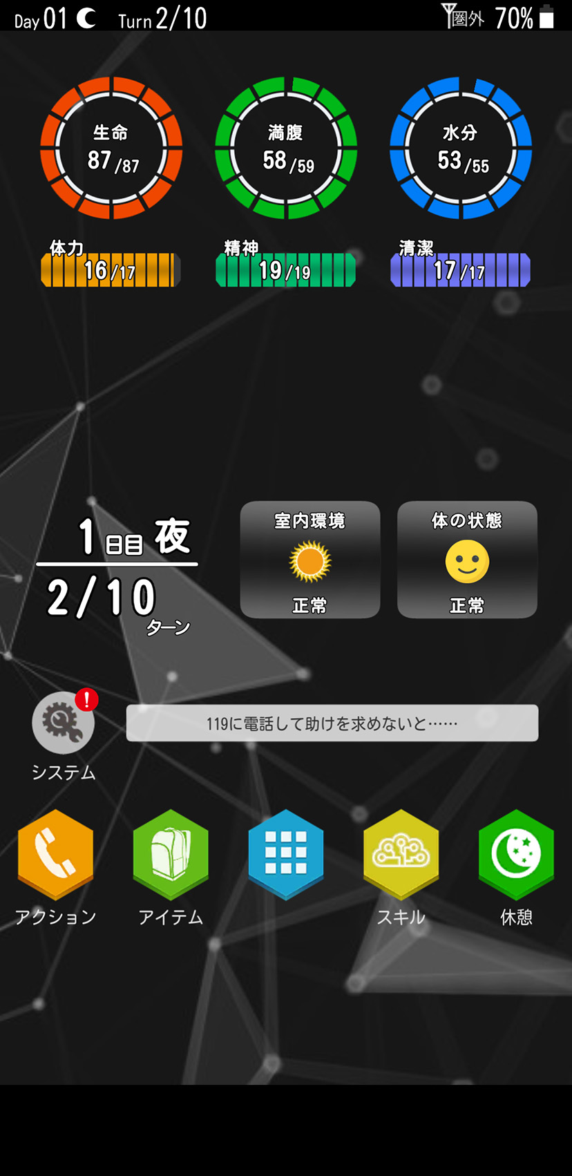 普段なら、通報できなくても待っていれば救助されるけど、被害の規模が大きくて救助が来る日が不明なのが、このゲームの緊張感を高めているよ!