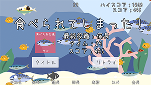 モンスターに接触すると『ビチャ!』という音がして、赤い画面にeaten.の文字。
