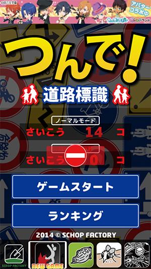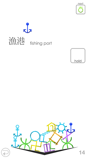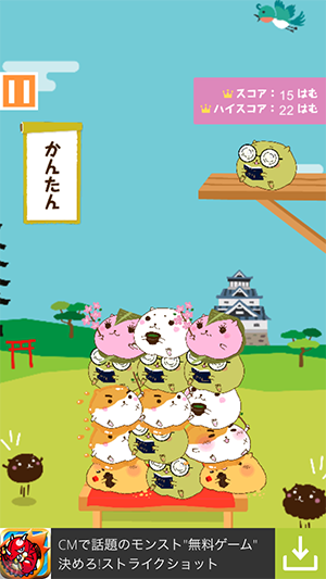 左右に動く地図記号をタップで落として、できるだけ多く積みあげるよ〜