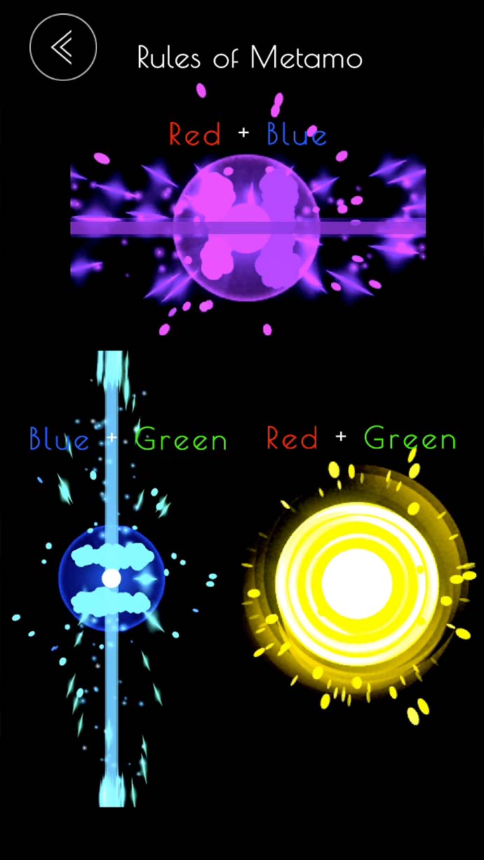 色鮮やかな花火のような、連鎖爆発が爽快!敵によって弾を替える、色と音の楽しいアクションパズル「Metamo-メタモ-」無料♪
