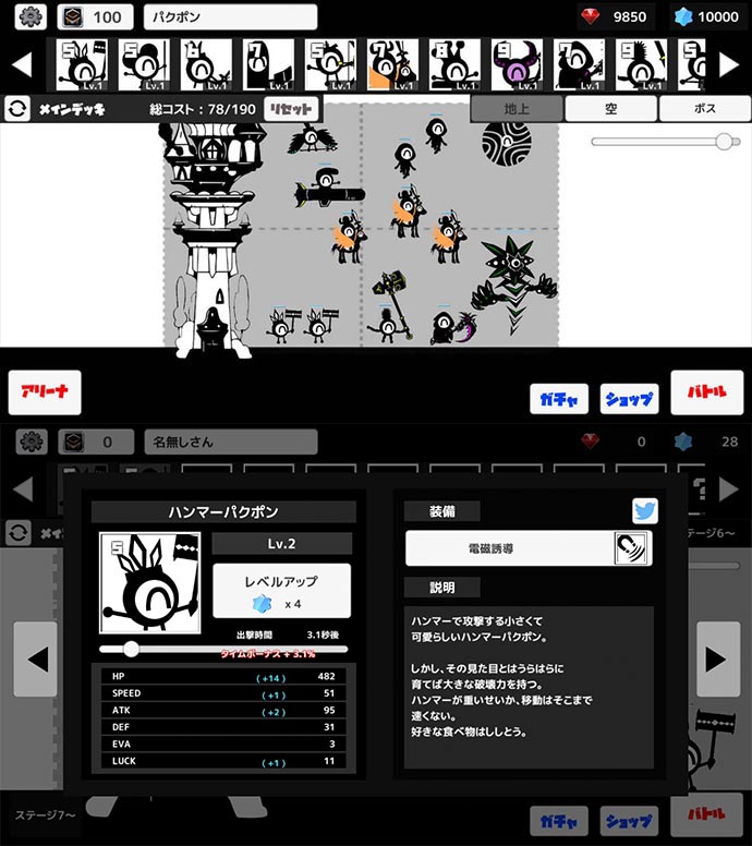戦闘生物パクポンを育てて対戦する、配置時限型ディフェンスゲームだよ〜