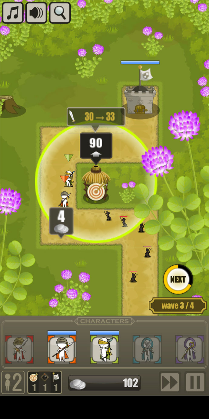 シンプルルールで、説明抜きで誰でもすぐに楽しめるタワーディフェンスゲーム。