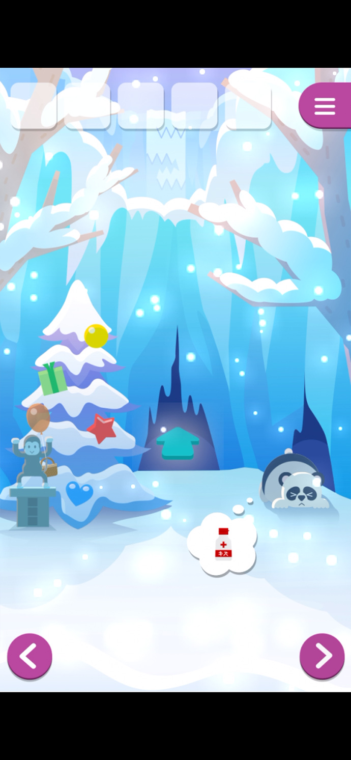 雪の降る島で、どうぶつたちの悩みを解決していく、楽しい脱出ゲーム。