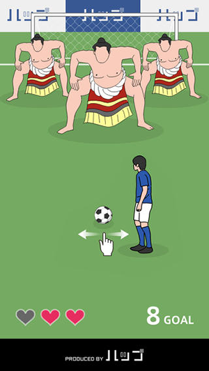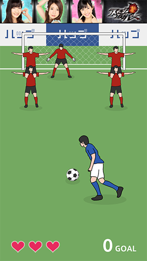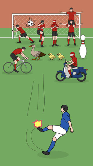 ありえないフリーキック場面!次々と待ち受ける、ありえないディフェンダー達!サッカーシュートゲーム「こんなフリーキックはイヤだ」無料♪